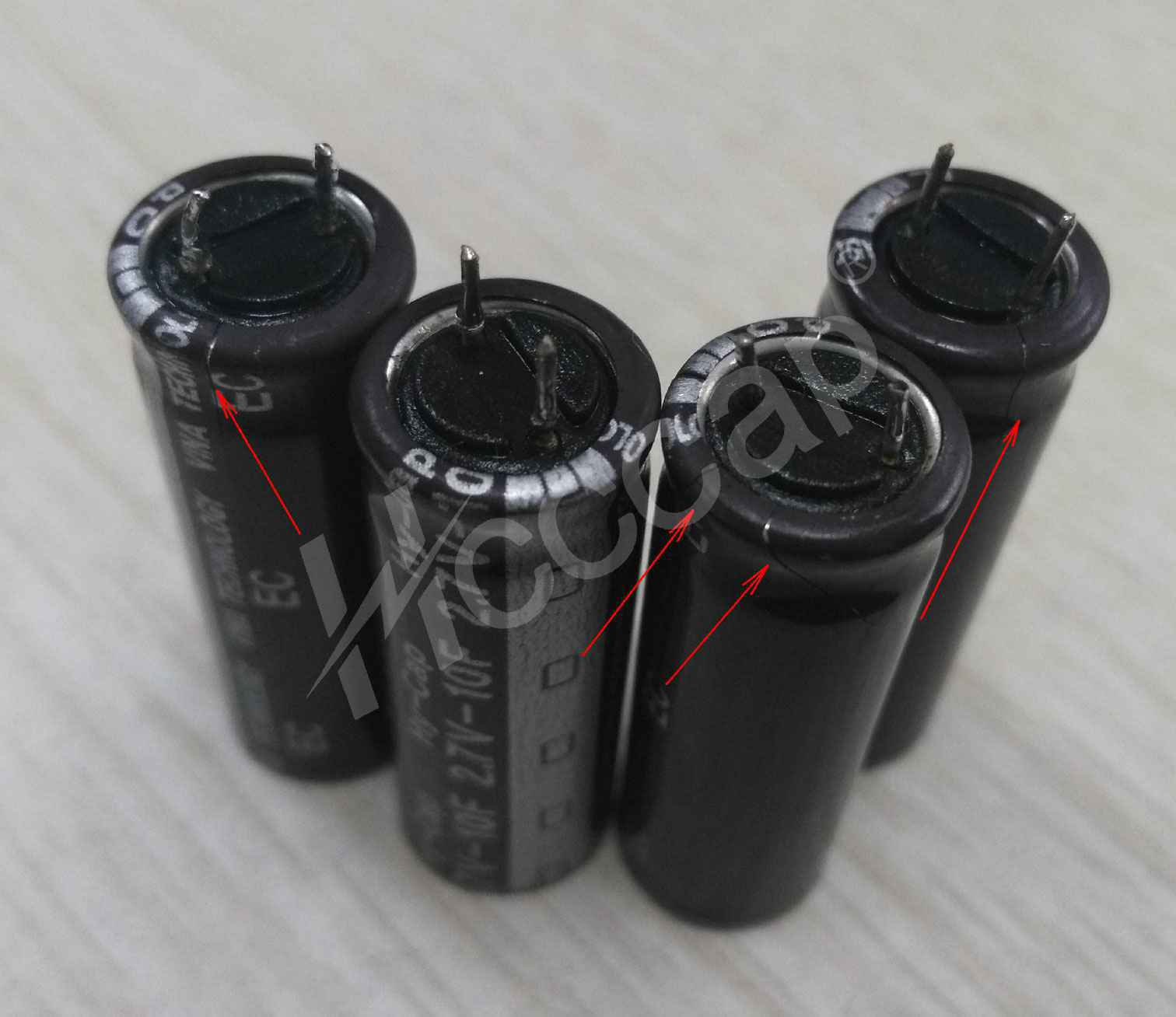 这也表明:正常电容表面洁净,在前2~3年往往不会出现“漏液”现象 ,该现象通常会在几年之后通过自然渗漏的累积才可能出现。